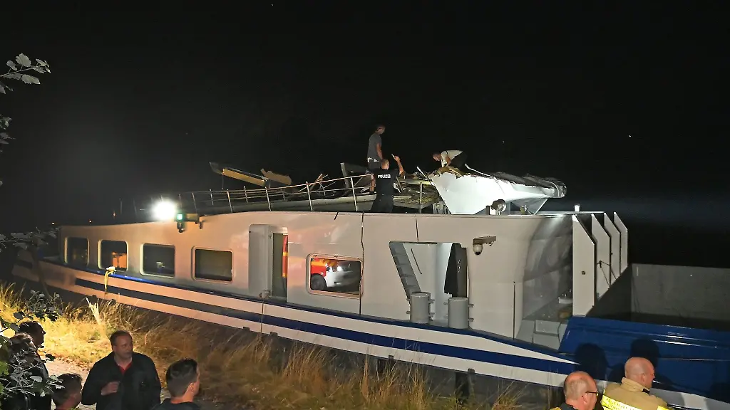 Der 170 Meter lange Schubverband - so nennt man die Kombination aus einem motorisierten Schiff, das einen sogenannten Leichter ohne Motor schiebt - besteht Polizeiangaben zufolge aus einem 95 Meter langen Schiff mit Motor und einem 75 Meter langen Leichter. Nach dem Unfall konnte er nicht mehr selbst weiterfahren, ging vor Ort vor Anker und ragte dabei noch in die Fahrrinne. Die Reederei des havarierten Schiffs wollte laut Polizei ein Schubschiff schicken, um den Weg frei zu machen. Außerdem musste demnach geprüft werden, ob etwas vom Führerhaus im Kanal lag.