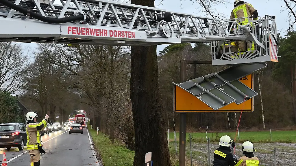 In Herdecke im südöstlichen Ruhrgebiet verletzte sich ein Mensch bei dem Versuch, Photovoltaik-Module auf einem Hausdach zu sichern. Auch in weiteren Städten im Ruhrgebiet meldeten die Feuerwehren zahlreiche Einsätze. Bäume stürzten um und Dachziegel lösten sich. 87 Einsatzstellen gab es demnach am Nachmittag alleine in Bochum, 40 in Recklinghausen. In Werne knickte ein Telefonmast um und musste von der Feuerwehr gesichert werden.
