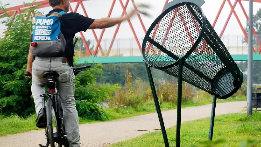 Herne (dpa/lnw) - Müllentsorgung sportlich nehmen: Die Stadt Herne testet an einer beliebten Fahrradstrecke am Kanal sogenannte Wurfmülleimer. Die stabilen Gittermülleimer haben eine große Öffnung, die schräg in Richtung der Vorbeiradelnden gekippt ist. "Die Idee dahinter: Die Leute sollen nicht anhalten müssen, um ihren Müll zu entsorgen", sagte ein Stadtsprecher auf Anfrage der Deutschen Presse-Agentur. Die Körbe sollen außerdem dazu motivieren, den Müll "zielgenau statt einfach in die Landschaft" zu werfen.