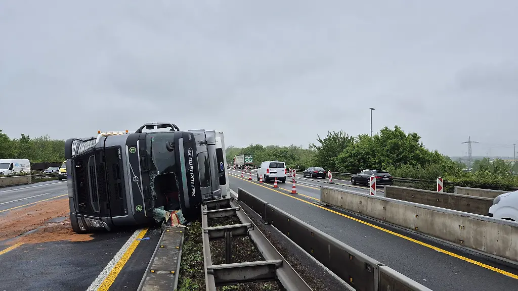 Nordrhein-WestfalenUmgekippter Lastwagen auf A4 geborgen - Fahrbahn wieder frei