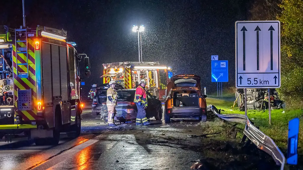 Lüdenscheid (dpa/lnw) - Nach einem Unfall mit vier Fahrzeugen in Höhe Lüdenscheid-Süd ist die Autobahn 45 in Richtung Frankfurt am Abend gesperrt worden. Nach Angaben der Polizei waren insgesamt 13 Personen am Unfall beteiligt – darunter fünf Kinder.