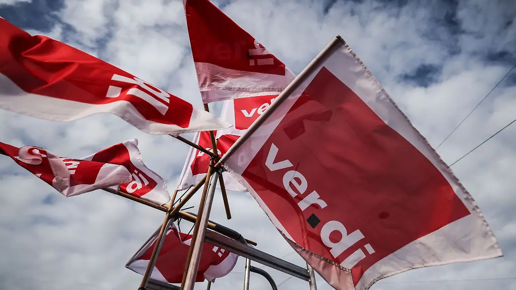 Fahnen-der-Gewerkschaft-Verdi-wehen-vor-dem-Depot-der-Koelner-Verkehrsbetriebe-KVB