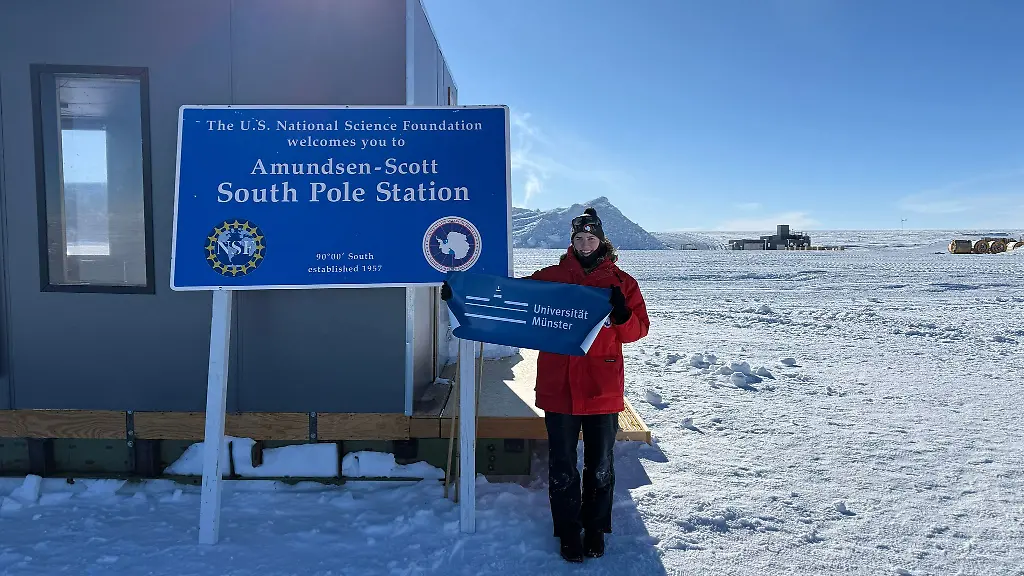 Schlüter stammt aus Ibbenbüren an der Landesgrenze zu Niedersachsen und forscht an der Uni Münster. Für mehrere Monate war sie Teil des Teams von internationalen Physikern, die im IceCube-Observatorium an der Amundsen-Scott-Südpolstation Grundlagenforschung betreibt. Dazu werden unter der Eisfläche Detektoren als Messpunkte platziert, um die Wechselwirkung von Neutronen mit dem Eis zu untersuchen. Neutronen sind Teil der Atomkerne. In den zurückliegenden Wochen wurde eine neue Generation dieser in Münster am Institut für Kernphysik entwickelten empfindlicheren Sensoren platziert. Schlüter half dabei mit.