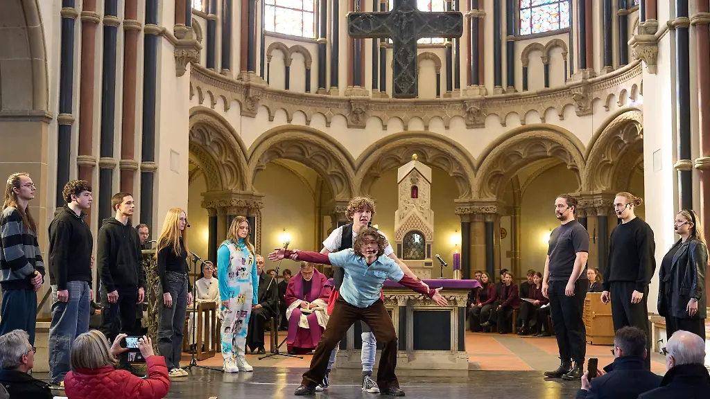Eingebettet war das Programm in einen Gottesdienst in der Herz-Jesu-Kirche. Neben einer biblischen Lesung und einer Predigt waren dort unter anderem Musikstücke oder Schauspielausschnitte zu sehen. Das Koblenzer Jugendtheater spielte etwa eine Szene aus dem Musical "Be More Chill".