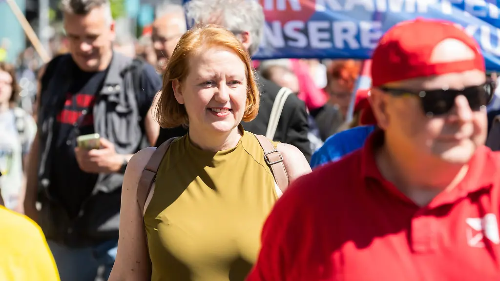 Mit Blick auf die Tarifrunde lautet das Motto der Kundgebungen am Tag der Arbeit: "Mehr Lohn, mehr Freizeit, mehr Sicherheit". DGB-Chefin Wingertszahn mahnt ein Umdenken bei vielen Betrieben an.
