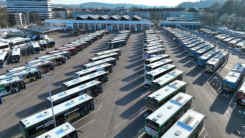 Saarbrücken (dpa/lrs) - Der Warnstreik im öffentlichen Nahverkehr im Saarland wird heute fortgesetzt. Am zweiten Tag in Folge blieben vielerorts die Busse in den Depots, wie Janosch Fegert sagte, Gewerkschaftssekretär der Fachgruppe Busse und Bahnen bei der Gewerkschaft Verdi.