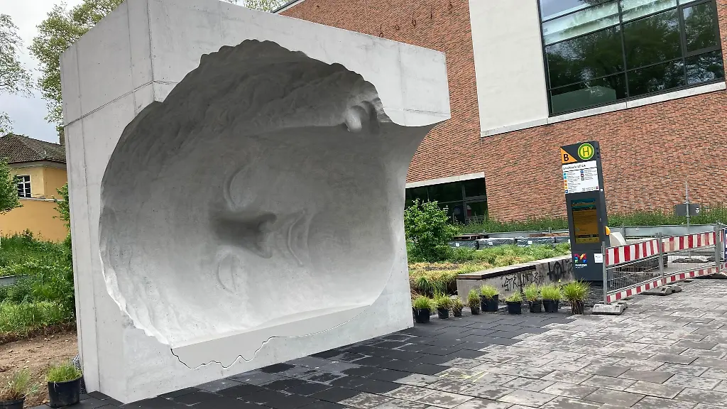 Mainz (dpa/lrs) - Der stark vergrößerte, liegende Kopf einer antiken Venus-Statue wird in Mainz als Bushaltestelle genutzt. Fahrgäste der Mainzer Verkehrsgesellschaft können ihre Wartezeit künftig an der neuen Haltestelle "Stadtpark/LEIZA" im Schutz der Beton-Skulptur verbringen. Diese vom Land geförderte "Kunst am Bau" schaffe eine Verbindung des Leibniz-Zentrums für Archäologie (LEIZA) in den öffentlichen Raum, sagte Finanz- und Bauministerin Doris Ahnen (SPD) am Freitag bei der Präsentation.