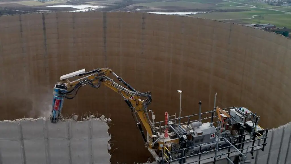 Das AKW am Rhein nördlich von Koblenz wird seit 2004 zurückgebaut. Der Kühlturm war mal höher als der Kölner Dom. Seit Juni 2018 hatte ihn ein eigens dafür konstruierter, ferngesteuerter Abrissroboter regelrecht von oben her abgeknabbert, mit Hilfe einer Zange mit Zacken. Mittlerweile ist der Roboter RWE zufolge von der dünnen Betonwand des Kühlturms genommen worden - weil für ihn im unteren Teil unter anderem die Neigung des Baus zu groß geworden war.