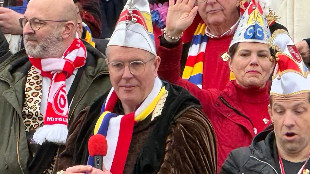 Mainz (dpa/lrs) - Der rheinland-pfälzische Ministerpräsident Alexander Schweitzer (SPD) setzt an Rosenmontag auf Bewährtes. Der Regierungschef zeigte sich beim Fastnachtsumzug auf der Ehrentribüne in der Nähe des Mainzer Doms erneut als Johannes Gutenberg verkleidet.