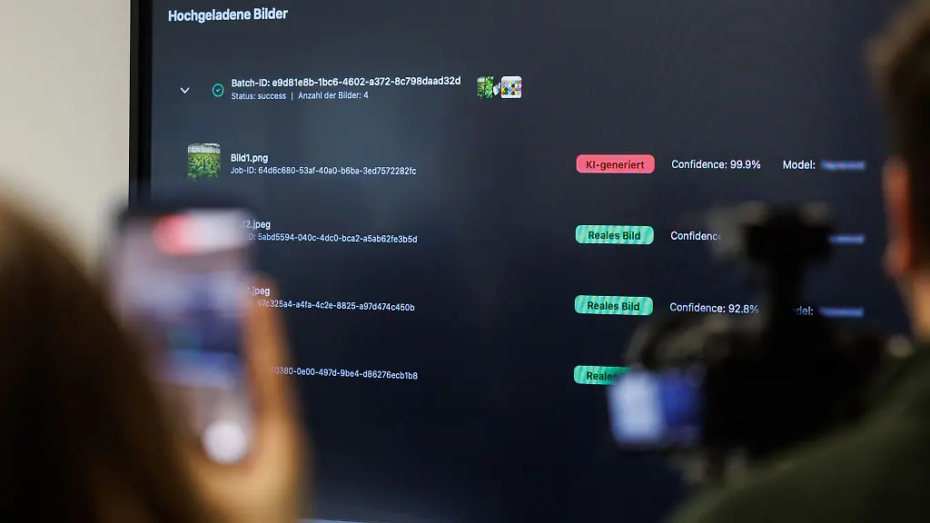 Bei der KI-gestützten Anwendung können auch große Mengen an Fotos einfach per Drag und Drop (Ziehen und Ablegen) in eine Suchmaske geschoben werden. Innerhalb von Sekunden wird die Wahrscheinlichkeit berechnet, ob es sich bei dem Bild um eine Fälschung handelt. Das falsche Bild wird rot umrandet, eine echte Version mit Grün markiert. Die Analyse erfolgt automatisch auf Basis von Auffälligkeiten in der Bildstruktur.