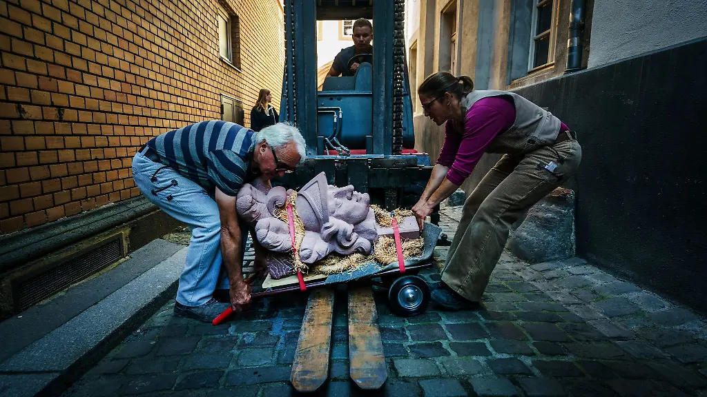 Der Schutzpatron des Mainzer Doms hat wieder einen Kopf. Steinmetzin Strauth ist "total erleichtert".