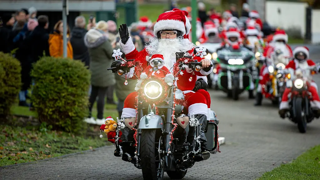 Neuburg am Rhein (dpa/lrs) - Zum zehnten Mal haben die "Harley Davidson Riding Santas" im Süden von Rheinland-Pfalz eine Spendenfahrt organisiert. Rund zwei Dutzend Männer und Frauen fuhren am Nikolaustag im Weihnachtsmannkostüm auf ihren Motorrädern an Schulen und Seniorenheimen vorbei, um Geschenke zu verteilen und Spenden für schwer kranke Kinder zu sammeln. Im vergangenen Jahr habe die Gruppe rund 179.000 Euro für das Kinderhospiz "Sterntaler" in Dudenhofen sammeln können - ein neuer Rekord, sagte Sprecher Patrick Kuntz der Deutschen Presse Agentur.