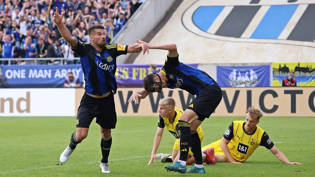 Kai Brünker (67. Minute) und Patrick Schmidt (86.) aus abseitsverdächtiger Position schossen vor 15.000 Zuschauern im ausverkauften Ludwigspark die Tore und konterten die BVB-Führung von Julian Hettwers (34.). Der BVB II muss hingegen die Liga verlassen und ist in der kommenden Saison viertklassig.
