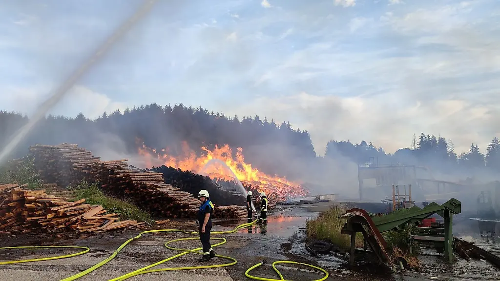 Hermeskeil (dpa/lrs) - Ein Großbrand in einem Sägewerk hat am Mittwoch in Hermeskeil im Landkreis Trier-Saarburg einen Großeinsatz von Feuerwehr und Polizei ausgelöst. Sechs Menschen wurden leicht verletzt, darunter vier Einsatzkräfte, wie die Technische Einsatzleitung am Donnerstag mitteilte. Vier der Verletzten mussten demnach zwischenzeitlich im Krankenhaus behandelt werden. Alle hätten die Klinik inzwischen wieder verlassen.