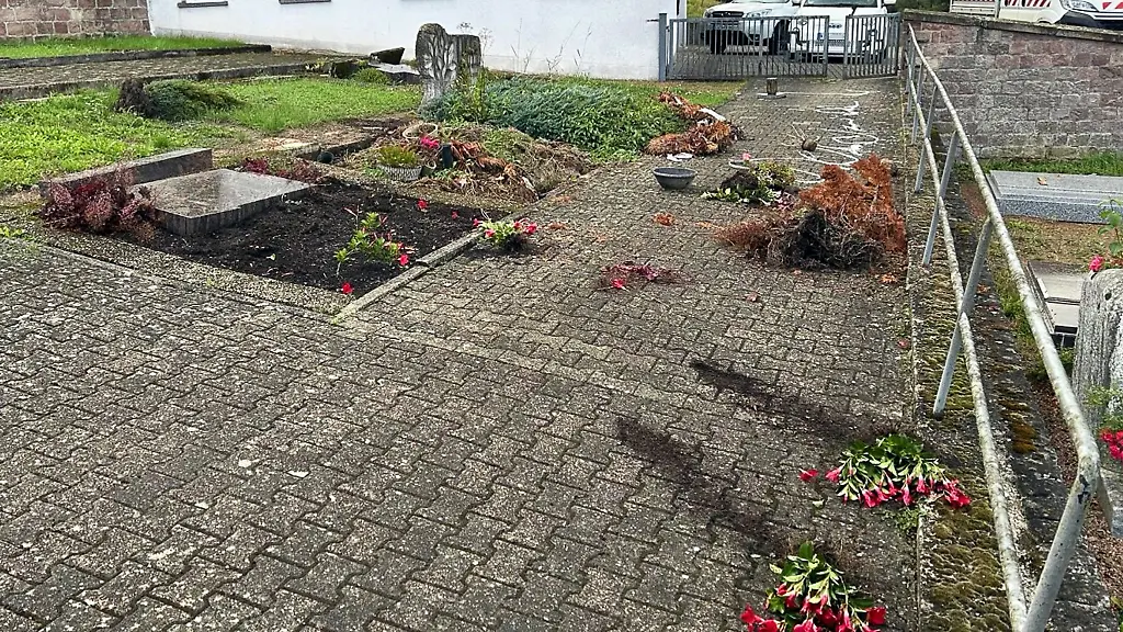 Herausgerissene Pflanzen und umgeworfene Grabsteine: Noch unbekannte Täter haben einen Friedhof im Kreis Kusel verwüstet. Dabei haben sie nicht nur materiellen Schaden hinterlassen.