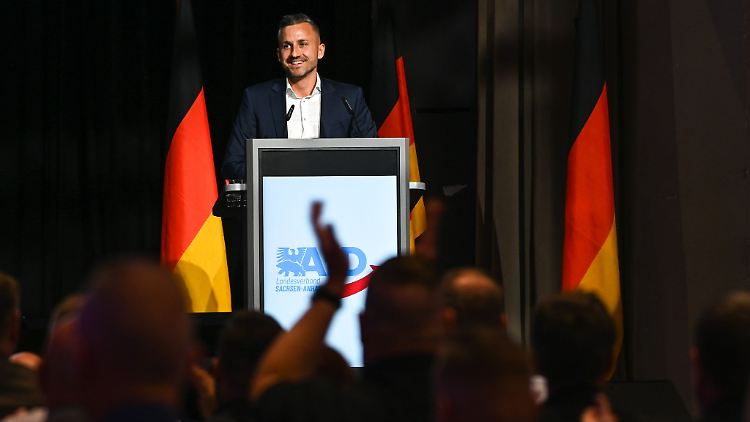 "Holen wir uns nächstes Jahr die absolute Mehrheit, liebe Freunde", rief Siegmund in den Saal. "Das ist nicht nur möglich, das ist realistisch", sagte Siegmund in seiner Vorstellungsrede. Er ist seit 2016 Landtagsabgeordneter. Gemeinsam mit Oliver Kirchner führt er die Fraktion seit 2022. Siegmund absolvierte einst eine Ausbildung zum Kaufmann im Groß- und Außenhandel und erwarb später einen Bachelor-Abschluss in Wirtschaftspsychologie und Betriebswirtschaftslehre. In sozialen Medien hat der 34-Jährige mit seinen Videos hohe Reichweiten.