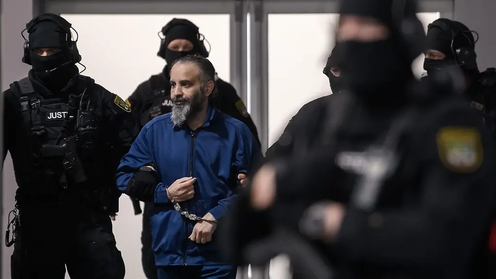 Justitzbeamte-fuehren-Taleb-al-Abdulmohsen-in-den-Gerichtssaal-des-temporaeren-Gerichtsgebaeudes-vom-Landgericht-Magdeburg