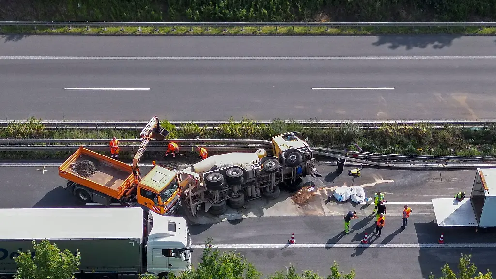 Autofahrer mussten sich auf der A14 auf Staus gefasst machen. Bei Halle ist ein Betonmischer umgekippt. Der Fahrer wurde schwer verletzt.