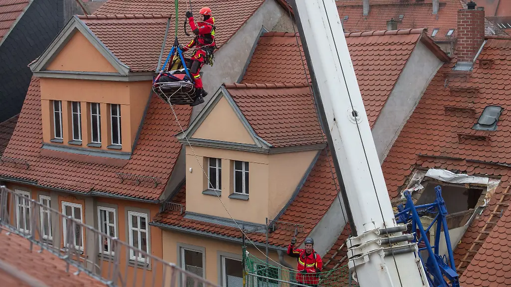 Er habe es auch nicht geschafft, aus eigener Kraft die Wohnung zu verlassen. Die Feuerwehr habe daraufhin eine Dachdeckerfirma hinzugezogen, die eine Dachgaube abgenommen und das Dach teilweise abgedeckt habe. Per Kran sei der Mann aus seiner Wohnung befreit worden, dabei seien auch Höhenretter aus Leipzig im Einsatz gewesen. Schließlich sei der Mann mit einem Schwerlastrettungswagen in ein Krankenhaus gebracht worden.