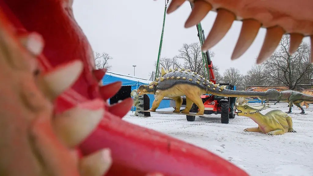 Die lebensgroßen Modelle können sich bewegen, Geräusche machen und sollen noch bis zum 8. März auf dem Jerichower Platz stehen. Dann reisen die Dinos laut Veranstaltern weiter nach Aschersleben, Gotha und Bad Hersfeld. Die Ausstellung ist mittwochs bis sonntags geöffnet.