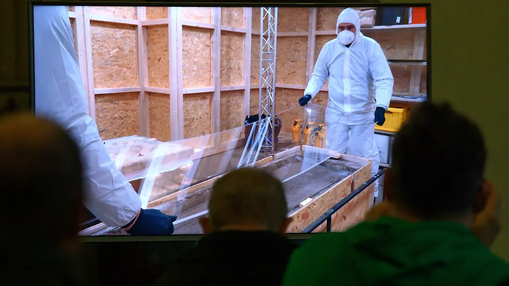 Die Holzkiste sei sehr stark angegriffen und müsse nun konservatorisch behandelt werden, sagte Dresely. "Da kommt auch wieder ein Überraschungspaket auf uns zu." Die Sanierung sei nicht möglich, ohne den Grabinhalt vorübergehend zu entnehmen.