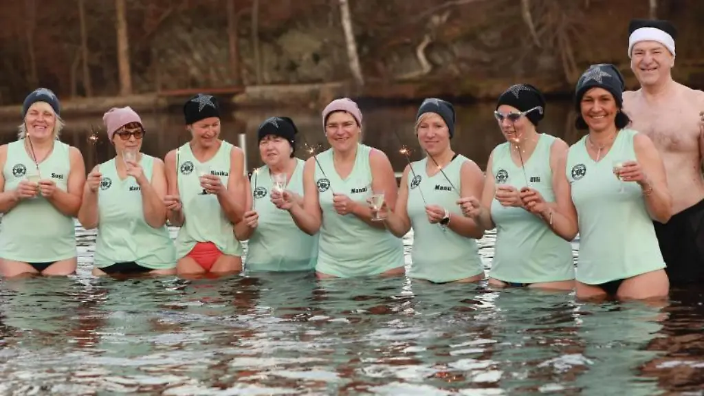 Hasselfelde (dpa/sa) - Zum Neujahrsbeginn erst mal ab ins kalte Wasser: In Hasselfelde im Harz haben acht mutige Frauen und ein Mann das neue Jahr mit Eisbaden begrüßt. "Wir sind mit 'nem Glas Sekt reingegangen und mit einer Wunderkerze", sagte Melanie Martin von den Hasselfelder "Eisperlen". Ganz so eisig war das Wasser dank der milden Temperaturen zum Jahreswechsel aber nicht. "Es waren vielleicht so zwei Grad, gestern war noch Eis auf dem Wasser", so Martin weiter. Die "Eisperlen" gehen regelmäßig in der kalten Jahreszeit ins Wasser, da Eisbaden das Immunsystem schützen und Erkältungen vorbeugen soll.