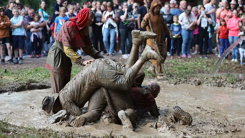 Dabei stoßen sich junge Männer am Pfingstmontag in einer Kuhle gegenseitig in den Schlamm. "Im Ablauf halten wir an der jahrhundertealten Tradition fest", sagt Nakielski: Die "Dreckschweine" werden von sogenannten "Läufern" attackiert, indem diese mit langen Peitschen die "Dreckschweine" aus der Kuhle jagen. Die "Läufer", ganz in weiß und mit vielen bunten Accessoires behangen symbolisieren den Sommer, die schlammverkrusteten "Dreckschweine" den Winter.