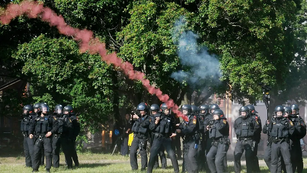 Während der Ausschreitungen waren laut Staatsanwaltschaft aber insgesamt 18 Polizisten verletzt worden. Sie waren aus einer Menschenmenge heraus mit Steinen und Böllern beworfen worden. Diese Verletzungen würden auch dem 25-Jährigen zur Last gelegt, da er gemeinschaftlich mit anderen gehandelt habe. Es komme nicht darauf an, ob konkret durch seine Würfe Beamte verletzt wurden.