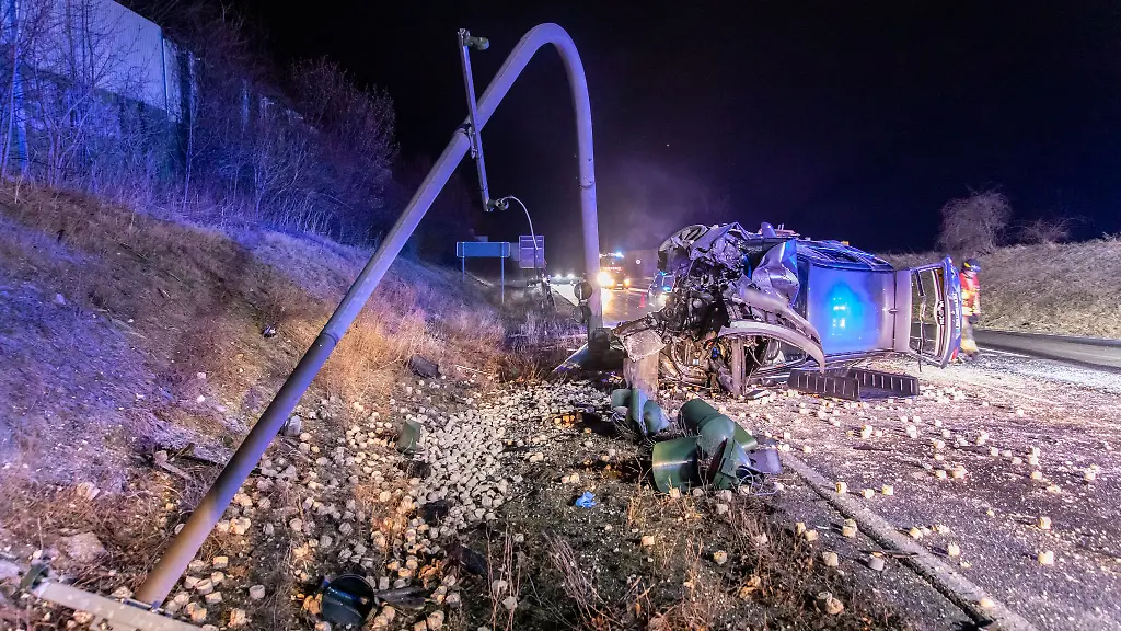 Stollberg (dpa/sn) - Ein 41-Jähriger hat bei einem Unfall wegen Glatteises eine Ampelanlage in Stollberg zerstört. Der Mann wurde bei dem Unfall auf der B180 nur leicht verletzt, wie die Polizei in der Nacht zum Freitag sagte. Demnach habe er bei der Kreuzung der B169 in Richtung der nahe gelegenen Autobahn wegen der Glätte die Kontrolle über sein Auto verloren und sei in die Ampelanlage gekracht. Das Fahrzeug sei dabei umgekippt und wie die Ampel stark beschädigt worden. Auch der Anhänger sei dabei umgekippt und verteilte die geladenen Holzpellets auf der Straße. Wegen Reinigungsarbeiten war die B180 zeitweise gesperrt. Der Sachschaden betrage etwa 20.000 Euro.