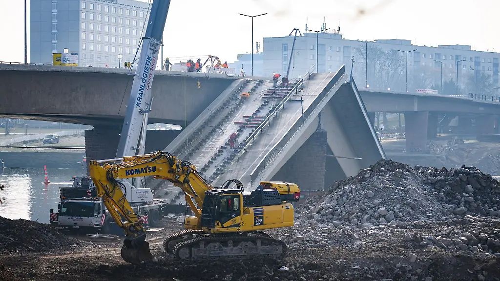 Dresden (dpa/sn) - Industrie und Handwerk der sächsischen Landeshaupstadt drängen auf den schnellen Abriss der zerstörten Carolabrücke sowie raschen Ersatz mit gewohnter Kapazität an gleicher Stelle. Mit dem Neubau müsse "spätestens im zweiten Quartal 2026" begonnen werden, fordern die Verbände von Industrie, Handwerk, Hotels und Gaststätten sowie Taxi-, Verkehrs- und Dienstleistungsgewerbe in einem Offenen Brief an die Stadtverwaltung und den Stadtrat. "Es braucht eine klare und ambitionierte Perspektive für den Wiederaufbau!"