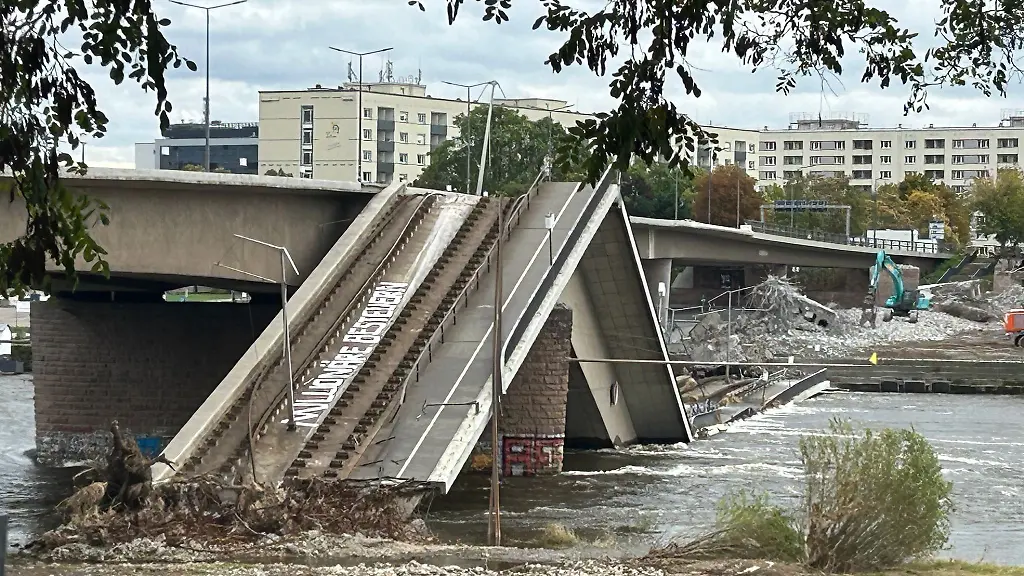 Ein Teil der Brücke war in der Nacht zum 11. September eingestürzt. Konkret betraf das den Brückenstrang C, auf dem neben Straßenbahngleisen ein Rad- und Fußweg über die Elbe führten. Auf den anderen beiden Strängen befinden sich Autospuren. Menschen kamen nicht zu Schaden. Die komplette Brücke ist seit dem Teileinsturz gesperrt. Die Ursachenforschung dauert an. Als Schwachstelle wurden bereits korrodierte Spannglieder ausgemacht. Die Abrissarbeiten am eingestürzten Teil sollen noch bis zum Jahresende dauern.