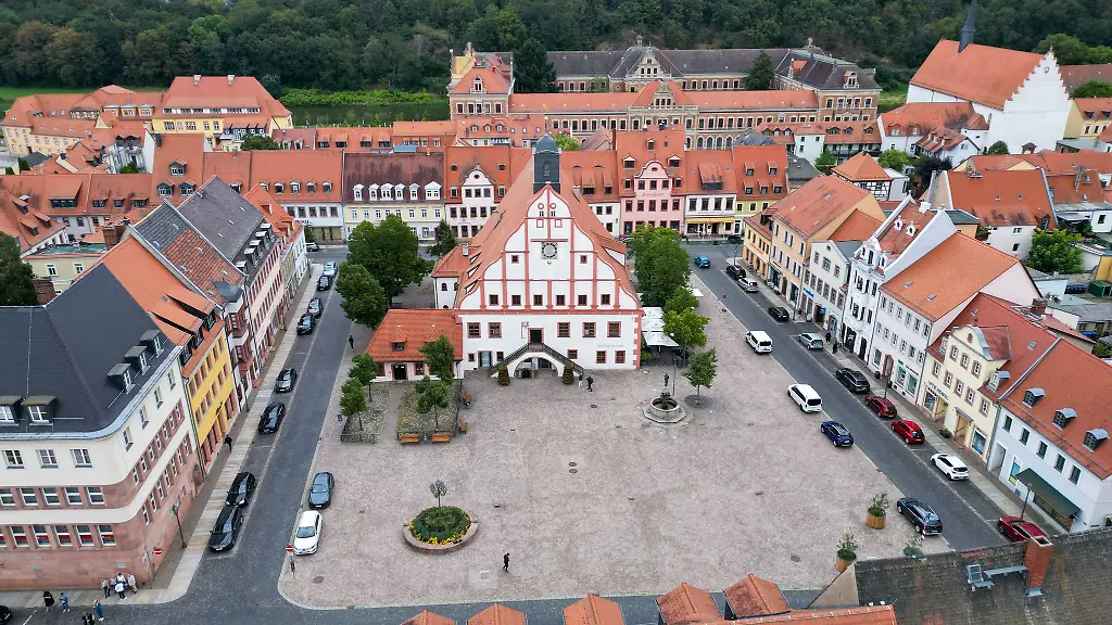 Unbekannte hinterlassen in Grimma Graffiti in schwarzer Farbe an zwei Gebäuden. Eines davon ist das Landratsamt.