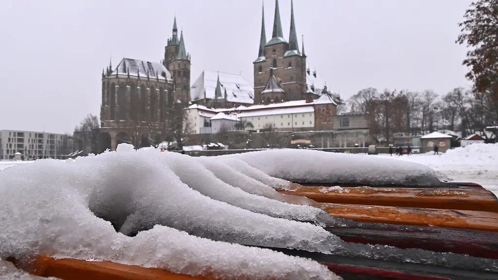 Leipzig (dpa/sn) - Zum Wochenende bleibt es winterlich kalt in Sachsen-Anhalt, Sachsen und Thüringen. Laut Deutschem Wetterdienst (DWD) ist es heute bei Höchsttemperaturen von fünf bis acht Grad am mildesten. Diese sinken bereits ab dem Nachmittag, sodass der Niederschlag zwischen Regen und Schneeregen wechselt.