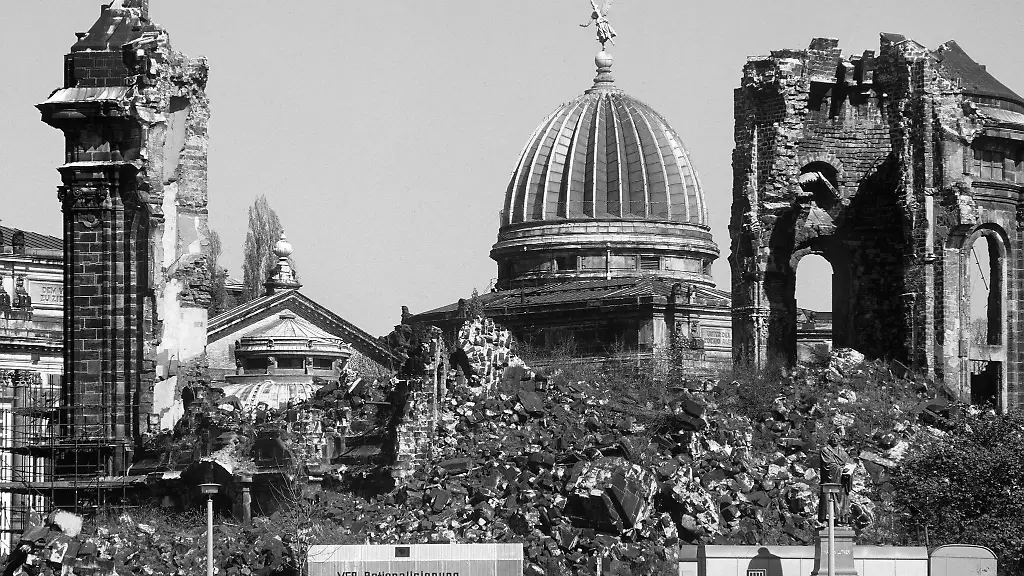 Dresden erlebte zwischen dem 13. und 15. Februar 1945 vier Luftangriffe britischer und amerikanischer Bomber. Nach Angaben der Historikerkommission zur Feststellung der Opferzahlen wurden 2.400 Tonnen Sprengbomben und 1.500 Tonnen Brandbomben abgeworfen. Den größten Anteil machten zwei nächtlichen Angriffe der britischen Royal Air Force aus. Bis zu 25.000 Menschen verloren ihr Leben.