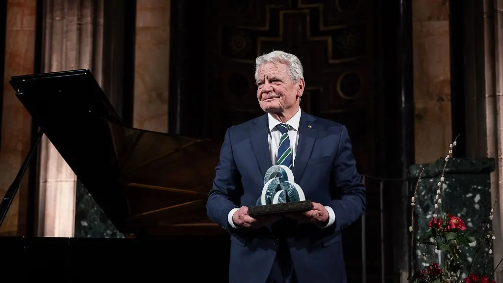 Gewürdigt wurde Gaucks langjähriges Engagement für Menschenrechte und den Dialog zwischen Völkern, Religionen und Kulturen. Als evangelischer Pastor in der DDR, später als Leiter der Stasi-Unterlagenbehörde und als Bundespräsident habe er sich konsequent für eine offene Gesellschaft eingesetzt. Auch nach dem Ausscheiden aus seinen Ämtern sei er eine prägende Stimme für Freiheit, Verantwortung und ein geeintes Europa geblieben, hieß es.