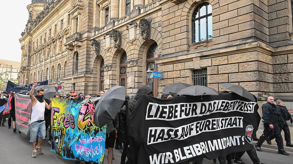 In Leipzig hatten laut Polizei am Mittwochabend rund 800 Menschen an einer Demonstration teilgenommen. Die angezeigte Teilnehmerzahl von 150 sei damit "eklatant überschritten" worden. Ein geplanter Aufzug sei von der Versammlungsbehörde untersagt und nur eine stationäre Versammlung zugelassen worden. Gründe seien unter anderem das vermummte und teils militante Erscheinungsbild der Demonstrierenden gewesen, die auch "Schutzbewaffnung" wie etwa spezielle Handschuhe mitgeführt hätten.