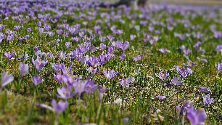 Drebach (dpa/sn) - Steigende Temperaturen locken im Erzgebirge Millionen Krokusse aus dem Boden und verwandeln den Ort Drebach in ein lilafarbenes Blütenmeer. Zum Wochenende hin werden die Krokuswiesen in voller Blüte stehen, sagte Bürgermeister Swen Drechsler der Deutschen Presse-Agentur. "Das ist für uns jedes Frühjahr ein Highlight."