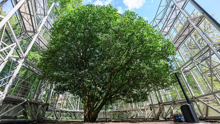 Dresden (dpa/sn) - Die Kamelie im Park von Schloss Pillnitz in Dresden bezieht wieder ihr Schutzhaus für den Winter. Das teilte das Schlösserland Sachsen mit. Die auf Schienen bewegliche Glas-Stahl-Konstruktion ist gut 13 Meter hoch und 54 Tonnen schwer. Sie soll die rund 250 Jahre alte Pflanze vor Frost schützen.
