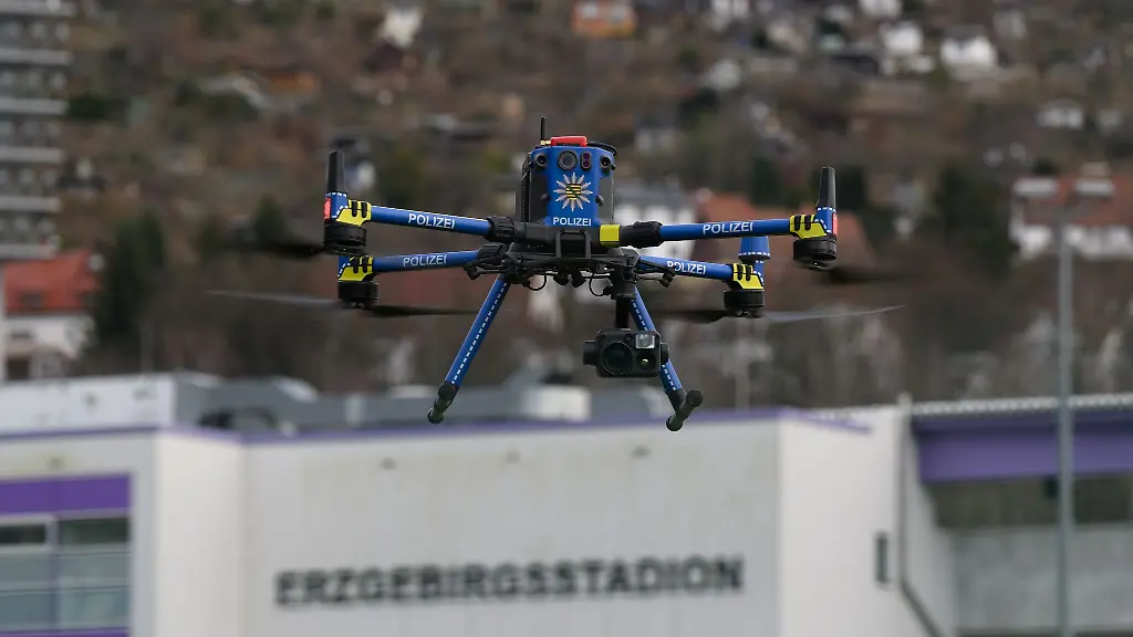 Das Auge fliegt mit: Drohnen gehören mittlerweile zum Alltag, auch bei der polizeilichen Arbeit. In Sachsen werden sie unter anderem bei Fußballspielen genutzt.