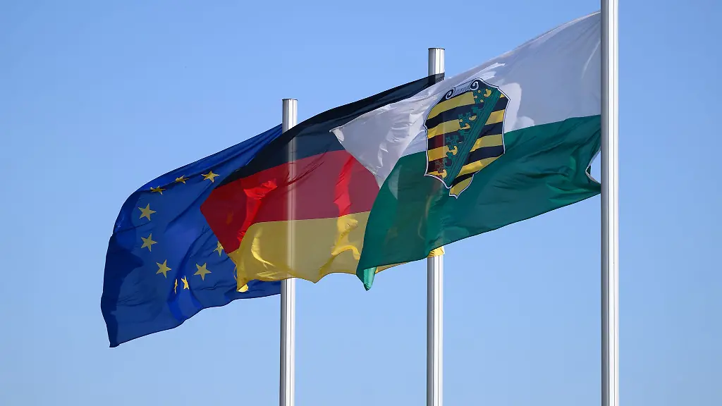 Bei der Verbundenheit mit Europa liegt in Sachsen mit 53 Prozent deutlich unter dem Bundesschnitt von 60 Prozent. Mit Deutschland fühlen sich der Umfrage zufolge 62 Prozent der Befragten eher stark oder sehr stark verbunden. Das ist der niedrigste Wert aller 16 Bundesländer.