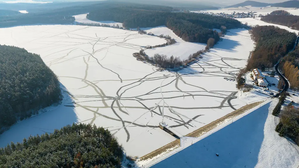 Wie gefährlich solche Eisflächen sein können, zeigte sich etwa 2023: Damals brachen im Januar eine 22 Jahre alte Frau und ihr 13 Jahre alter Bruder auf einem nur leicht zugefrorenen Stausee im Landkreis Hildburghausen ein und ertranken.