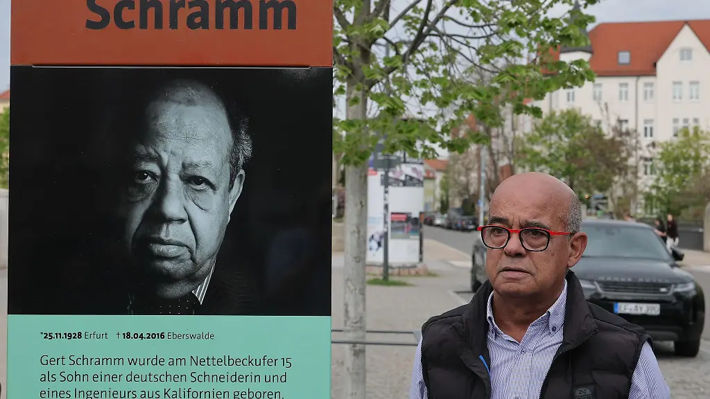 Schramms Vater, den dieser nie kennengelernt hatte, war zwischenzeitlich im Krieg zurück nach Erfurt gekommen, in der Absicht, Schramms Mutter zu heiraten. Doch die Nazis deportierten ihn nach Auschwitz, wo er umgebracht wurde. "Ihm wurde die Chance genommen, seinem Vater noch einmal zu begegnen", fasste Annegret Schüle die besondere Tragik der Biografie an der Stelle zusammen. Schüle ist Leiterin des für die Stelen-Gestaltung verantwortlichen Erinnerungsorts Topf & Söhne.