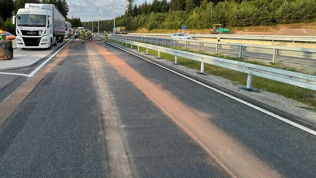 Auengrund (dpa/th) - Eine 15 Kilometer lange Ölspur hat auf einer Autobahn im Landkreis Hildburghausen rund zwölf Stunden lang den Verkehr beeinträchtigt. Zuvor war ein Fahrer mit seinem Sattelzug ersten Erkenntnissen nach aufgrund von Sekundenschlaf gegen eine Leitplanke gestoßen, wie die Autobahnpolizei am Donnerstag mitteilte. Dabei sei ein Dieseltank am Fahrzeug aufgerissen worden. Der 26 Jahre alte Fahrer sei dann am Mittwoch zum nächsten Parkplatz gefahren und habe die Polizei gerufen. Die Feuerwehr musste die Autobahn auf der von der Ölspur betroffenen Strecke reinigen. Die Arbeiten hätten zu der stundenlangen Verkehrsbeeinträchtigung geführt.
