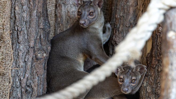 Erfurt (dpa/th) - Sie sehen etwas aus wie muskulöse Katzen und gehören zu den seltensten Raubtierarten der Welt: die beiden männlichen Fossas Bodo und Ravo wohnen nun im Zoopark Erfurt. Das Geschwisterpaar war im Mai 2024 in einem Zoo in den Niederlanden zur Welt gekommen und zog inzwischen nach Thüringen. Die Art gilt als stark gefährdet.