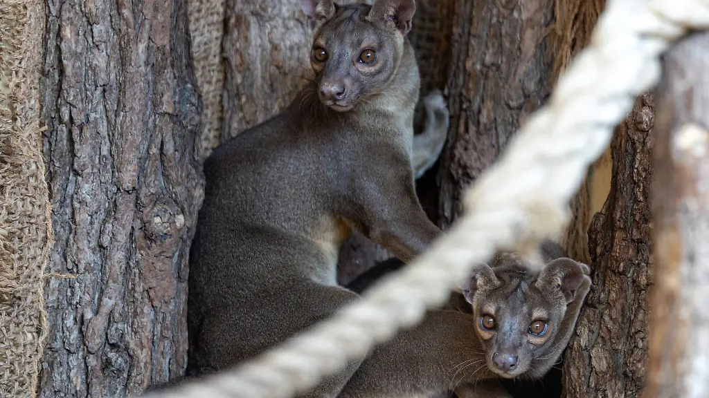 Fossas werden den Angaben zufolge auch Frettkatzen genannt und stammen ausschließlich von der Insel Madagaskar. Dort sind sie die größten einheimischen Raubtiere. Die geschickten Kletterer ernähren sich überwiegend von Lemuren, kleineren Säugetieren, Vögeln und Reptilien. Die Zerstörung der Regenwälder und direkte Bejagung machen ihnen aber das Leben schwer.