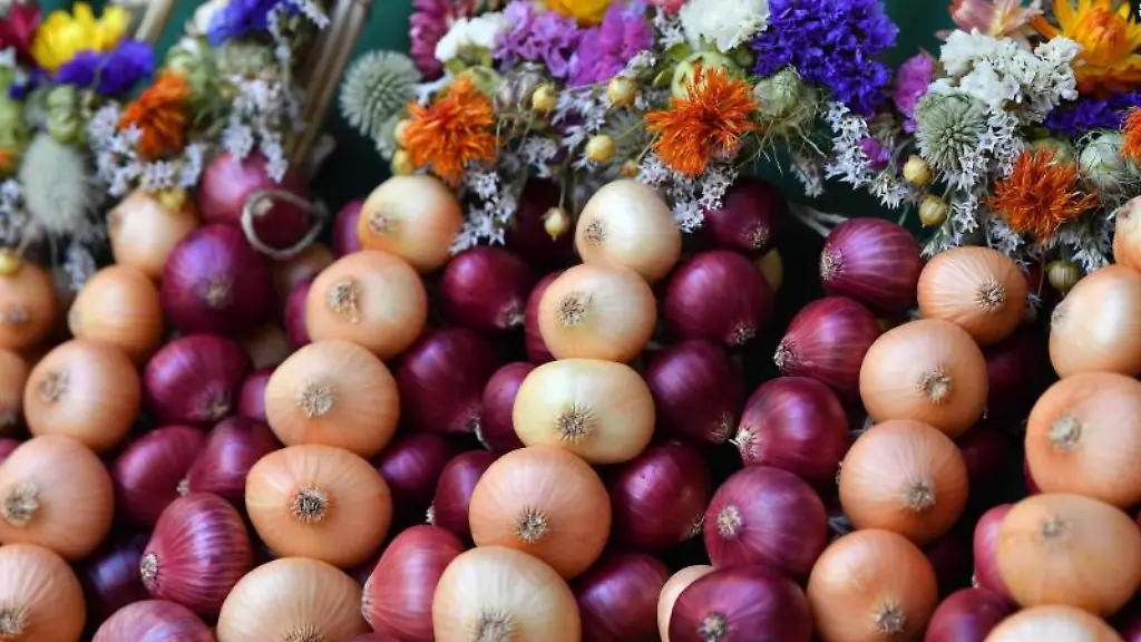 Weimar (dpa/th) - Der Weimarer Zwiebelmarkt will im Oktober wieder Besucher empfangen - pandemiebedingt allerdings erneut im kleineren Rahmen. Vom 8. bis 10. Oktober solle wieder das jahrhundertealte Handwerk der Heldrunger Zwiebelbauern im Mittelpunkt stehen. Sie werden an rund 50 Ständen ihre kunstvoll geflochtenen Zwiebelzöpfe sowie Kräutersträuße, Gemüse und Obst verkaufen, wie die Stadtverwaltung am Dienstag mitteilte.