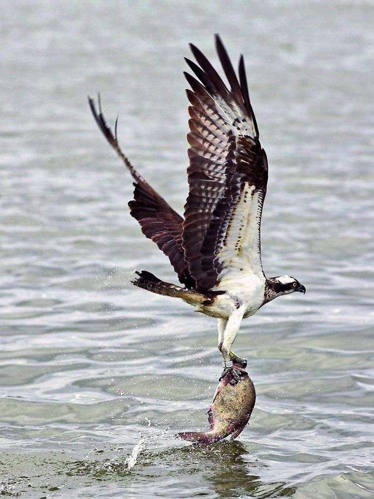Mit den ersten warmen Sonnenstrahlen kehrt der Fischadler aus Afrika zurück und bezieht sein Brutgebiet in der Nähe eines Sees. Er frisst nur Fisch, seine Fangmethode gleicht einer Performance: In 50 Meter Höhe steht er oft minutenlang rüttelnd über dem Wasser, im Sturzflug und mit vorgestreckten Fängen taucht er dann bis zu einen Meter tief ein und holt sich seine Beute.