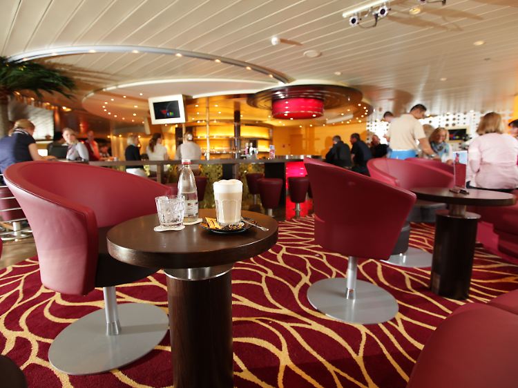 Einrichtung in den Farben des Sonnenuntergangs - hier in der Mar Bar der "Aidamar".