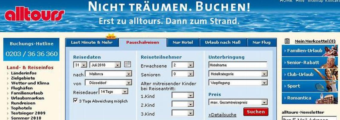 Bei dem deutschen Reiseveranstalter alltours werden die Urlaubsreisen im Sommer 2011 um durchschnittlich 2,9 Prozent teurer. Diese Anhebung gilt nur für den deutschen Markt. Der Löwenanteil der Erhöhung resultiert aus der geplanten Fluggaststeuer, die die Bundesregierung zum 1. Januar 2011 einführen will.