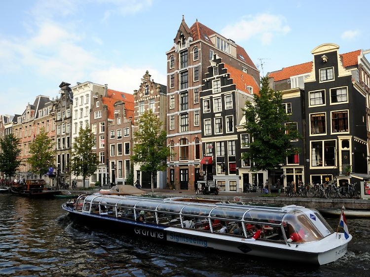 Die Giebelhäuser des Amsterdamer Grachtengürtels lassen sich angenehm mit dem Ausflugsboot besichtigen.